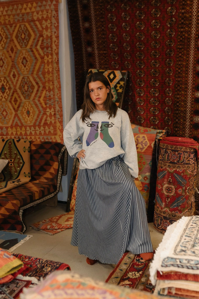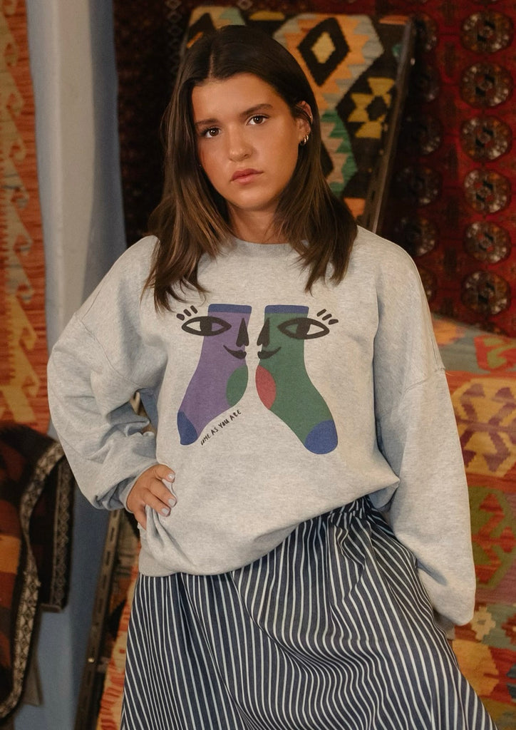 Gray relaxed fit sweatshirt with a "pair of socks" print on the chest