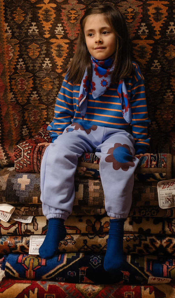 Sweatpants with flowers print details. Designed with an adjustable waist and elastic cuffs.